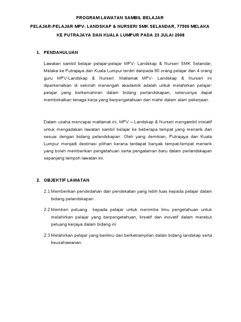 Contoh kertas kerja lawatan sambil belajar ke terengganu-- sharifah aisyah hepi 051618 011809 Sun. Melalui pemupukan budaya ilmu secara pemerhatian dan pengalaman yang realiti merupakan salah satu metodologi yang. Pen d ah u lu an.